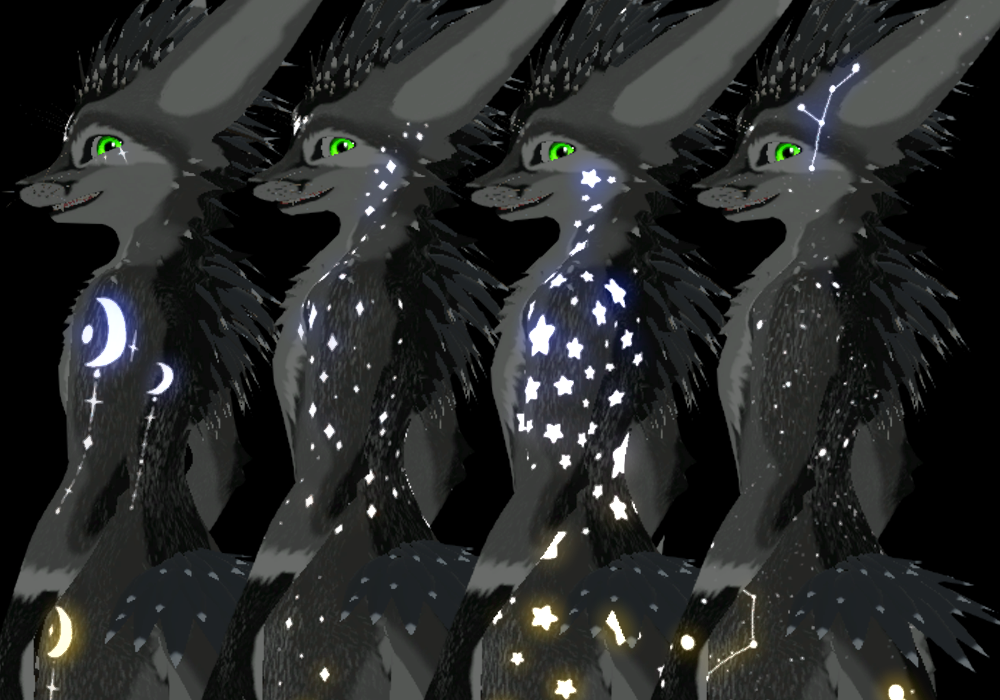The masks included are: cute chunky stars, a sprinkling of diamonds, a witchy looking moondrop set, and a constellation mask with separated layers incase you want to mess with audiolink!